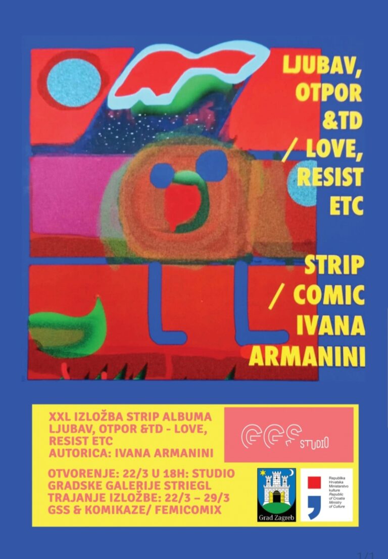 strip album ljubav, otpor &td je kompilacija radova nastalih u 7 godina, kroz 7 solo mikroizdanja (fmcx, 2017.; plava harmonika, 2018.; mora da je luda, 2018.; nini zine, 2019.; alisa u zemlji vode, 2020.; bots, 2021.; zero zine, 2022.), realiziranih kroz niz poziva, natječaja, izložbi, festivala, radionica i publikacija (albumi, art books, antologije, fanzini, risozini, webzini, concertine, bukleti itd). / the comic album love, resist etc is compilation of works created in the last 7 years & 7 solo microeditions (fmcx, 2017.; blue concertina, 2018.; she must be mad, 2018.; nini zine, 2019.; alice in waterland, 2020.; bots, 2021.; zero zine, 2022.), realized through the plenty of local and international invitations, contests, exhibitions, festivals, murals and publications (albums, art books, anthologies, fanzines, risozines, webzines, concertina books, booklets etc).
